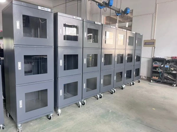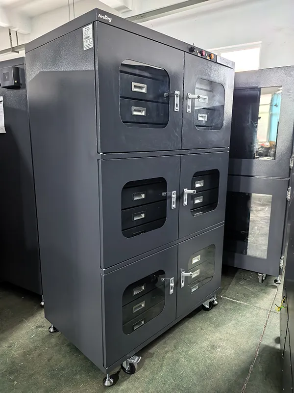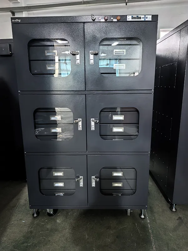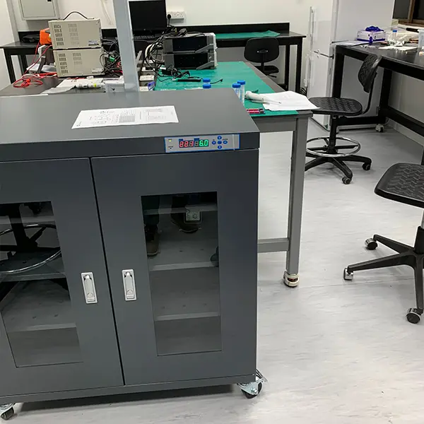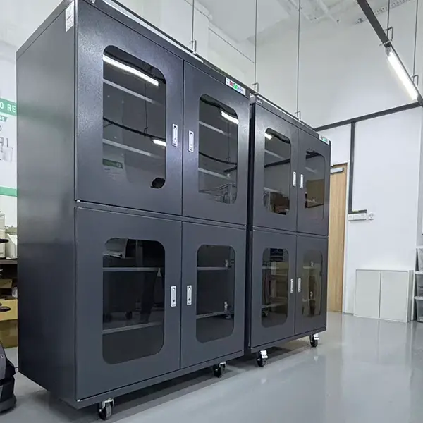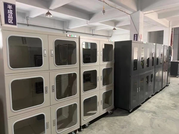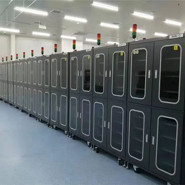 NetDry vochtbestendige kasten zijn ontworpen om elektronische componenten op te slaan, zoals PCB's, PCBA's, PCB-magazijnen, condensatoren en weerstanden, enz. In het bijzonder moeten PCB-pakketten die zijn geopend maar niet volledig worden gebruikt op SMT-productielijnen onmiddellijk in een vochtbestendige kast worden geplaatst om hun integriteit te behouden en hun houdbaarheid te verlengen. NetDry elektronische droogkasten volgen de J-STD-033D-standaard en bieden een omgeving met lage luchtvochtigheid om uw waardevolle producten te beschermen.
